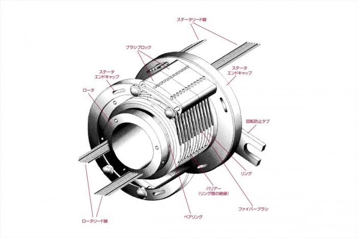 ムーグ社のオリジナル技術。接点圧が低い為、摩擦係数低く、超寿命・高速回転に対応。大電流に対応可能。潤滑油は不要。